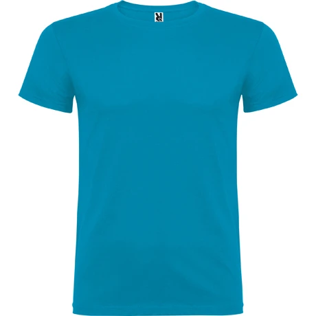 Kurzarm T-Shirt, Schlauchware. 2-lagiger Rundhalskragen mit Elasthan, Nackenband. Kindergrößen mit Seitennaht.