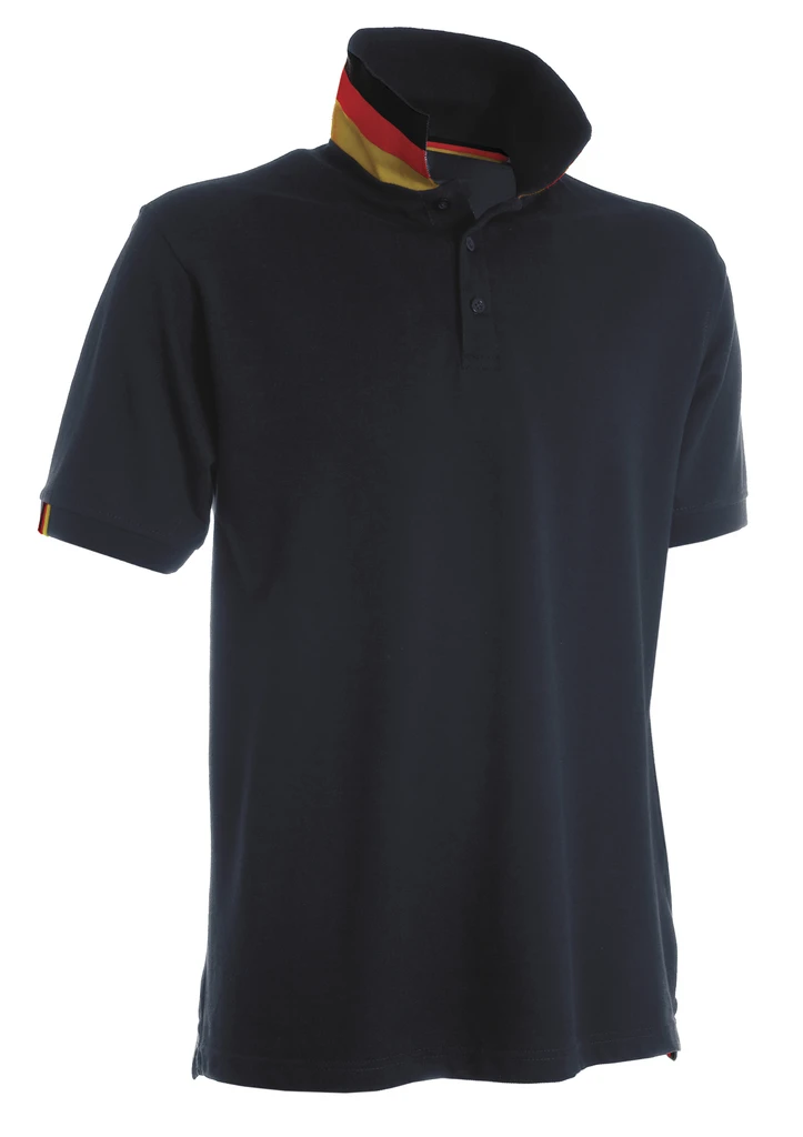 internationaler Flaggen, die nur bei aufgestelltem Kragen sichtbar sind, mit dezentem Einsatz in den Farben der Flagge am rechten Ärmelrand, Kragen und Ärmelrand aus Feinripp, Seitenschlitzen mit den Flaggenfarben, Nackenband aus Jersey in den Flaggenfarben, seitlichem Verstärkungsband, Nackensattel