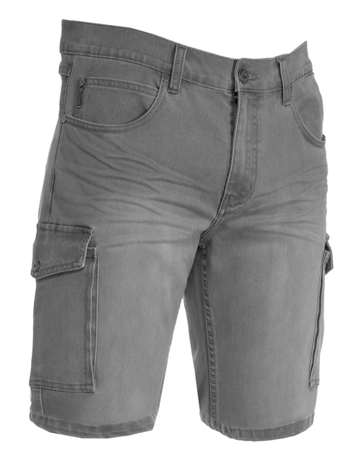 Herren-Bermudas im Jeans-Design mit fünf Taschen, zwei Seitentaschen mit LOCK SYSTEM mit leichter Ziehharmonikafalte, Hosenschlitz mit Metallreißverschluss und Knopf, Gürtelschlaufen, stone-washed für einen Used Look und Délavé-Effekt, mit kontrastfarbigen dickfädigen Nähten, Doppelnaht am Innenbein, Nieten und Patch aus echtem Leder