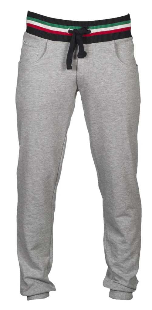 Ganzjährig tragbare Sweathose mit elastischem Rippstrick an Taille und Fußgelenk, Kordelzug in der Taille, zwei Vordertaschen und einer kleinen Stecktasche, Reißverschluss mit Patte