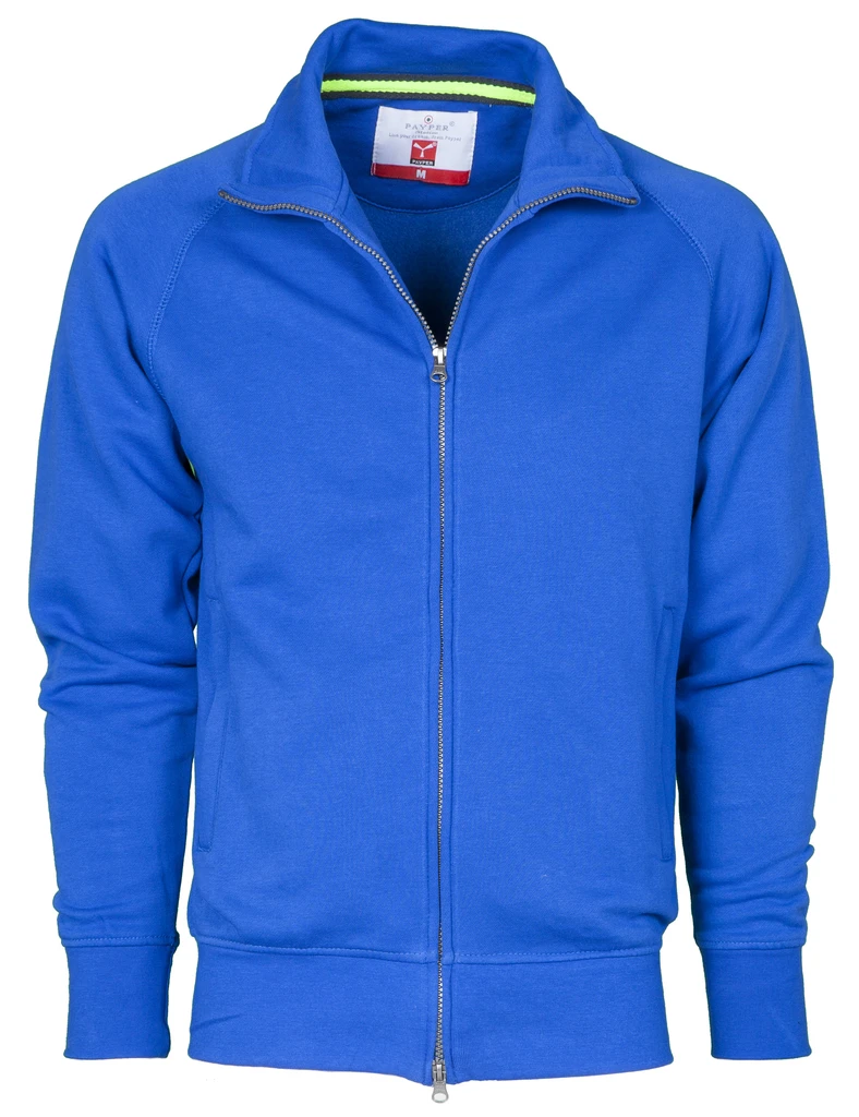 Herren-Sweatjacke mit durchgehendem, verdecktem Zwei-Wege-SBS-Reißverschluss aus Kunststoff mit Metallschieber, Raglanärmeln, zwei Taschen mit verdeckten Reißverschlüssen, elastischem Feinripp an Ärmeln und Taille, verstärkten Nähten