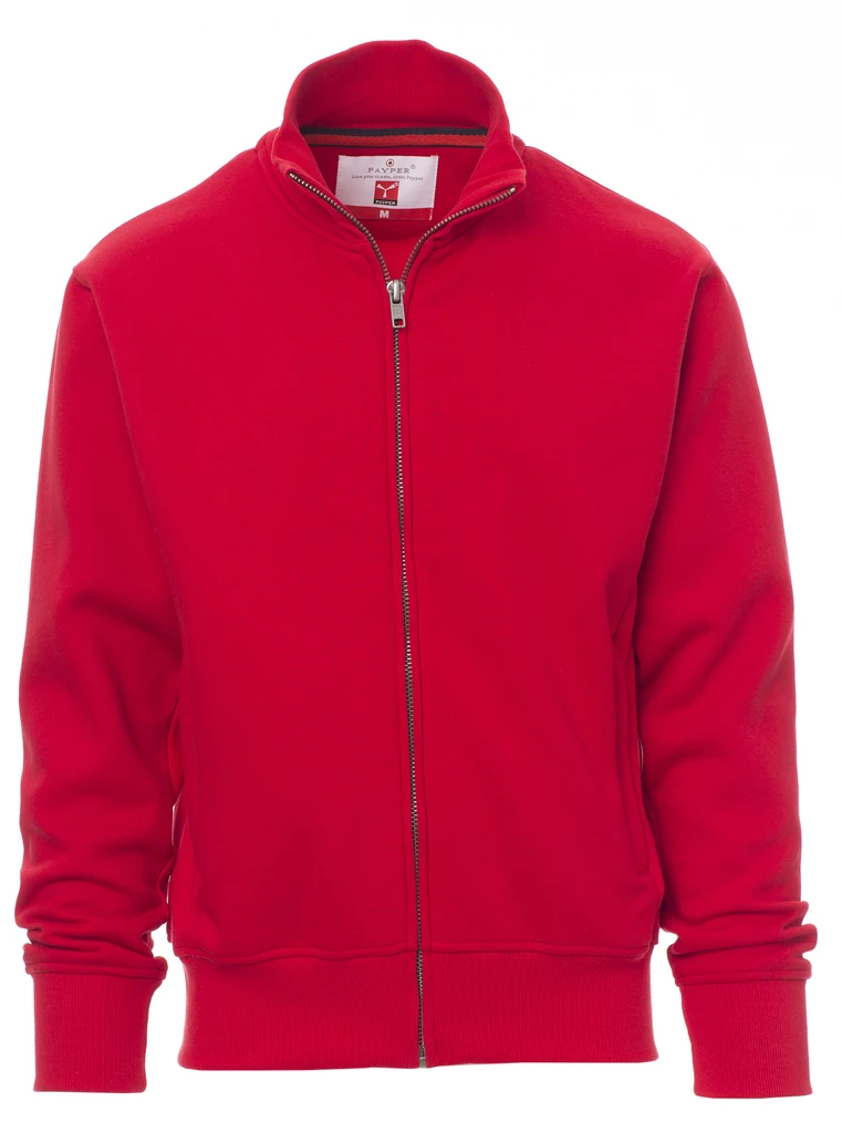 Herren-Sweatjacke mit durchgehendem SBS-Reißverschluss und Metallschieber, anliegendem Rippstrickbund, zwei Taschen mit Reißverschluss, Ärmelbündchen, Taille und Kragen aus elastischem Rippstrick, verstärkten Nähten