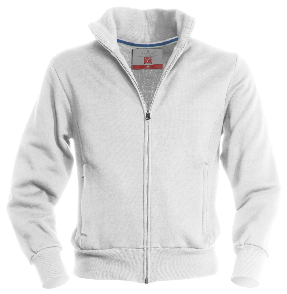 Herren-Sweatjacke mit durchgehendem SBS-Reißverschluss und Metallschieber, anliegendem Rippstrickbund, zwei Taschen mit Reißverschluss, Ärmelbündchen, Taille und Kragen aus elastischem Rippstrick, verstärkten Nähten