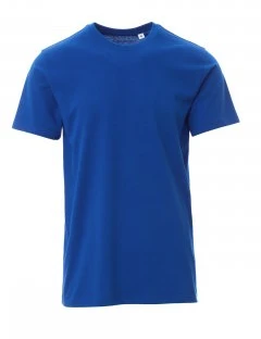 Herren-T-Shirt mit Rundhalsausschnitt, kurzärmelig, Feinripp-Kragen 1,5 cm aus Spandex - Mischgewebe mit Kappnaht an der Vorderseite, Verstärkungsband in Kontrastfarbe von Schulter zu Schulter, das im Kragen sichtbar ist, Stretchnähten, Seitennaht, neutral ohne Etikett