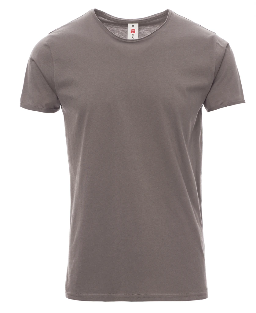Herren-T-Shirt, kurzärmelig, mit betontem, offenkantigem Rundhalsausschnitt, Innen-Doppelnaht
