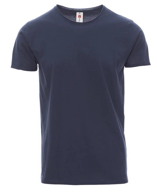 Herren-T-Shirt, kurzärmelig, mit betontem, offenkantigem Rundhalsausschnitt, Innen-Doppelnaht
