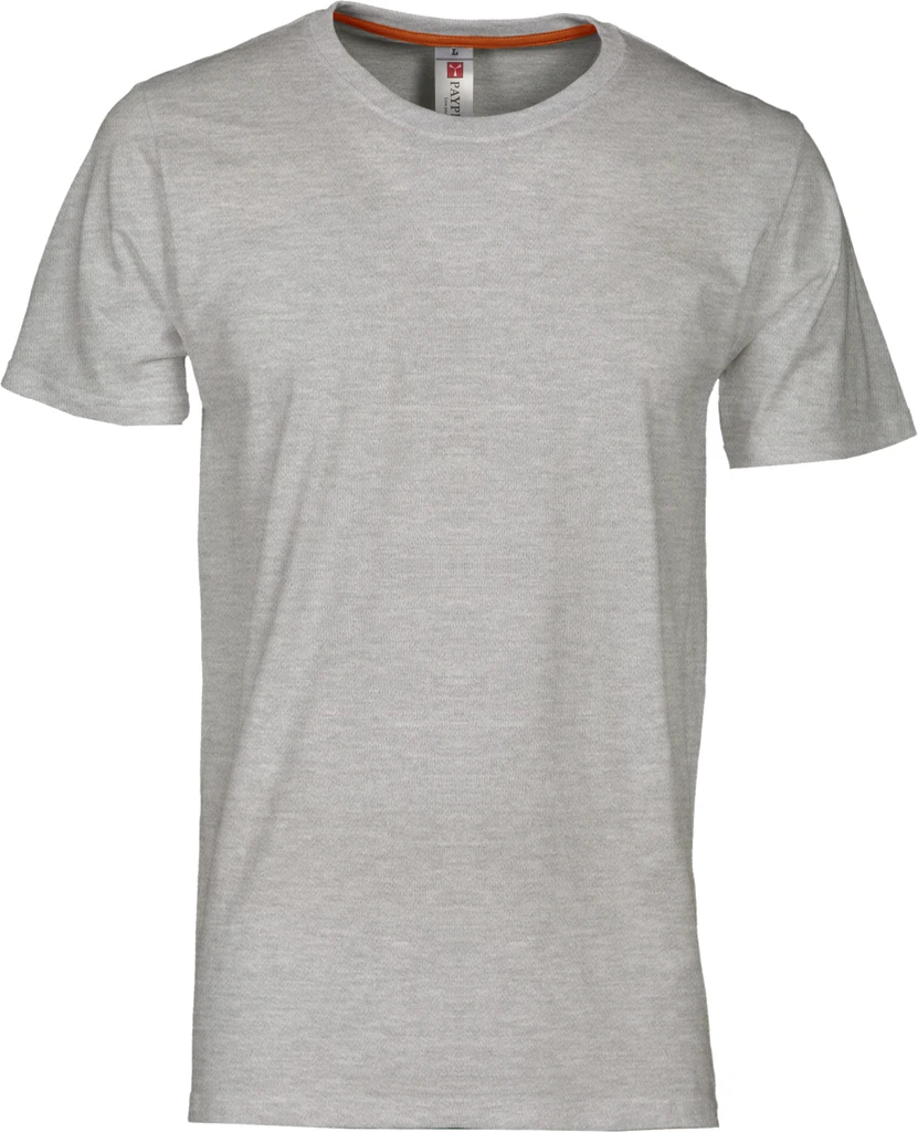 Herren-T-Shirt mit Rundhalsausschnitt, kurzärmelig, Feinripp-Kragen 1,5 cm aus Spandex-Mischgewebe mit Kappnaht an der Vorderseite, Verstärkungsband in Kontrastfarbe von Schulter zu Schulter, das im Kragen sichtbar ist, Stretchnähten, Seitennaht