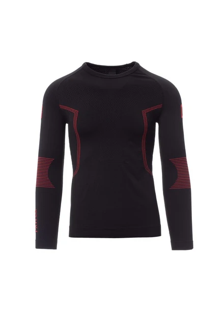 Herren-Thermoshirt, Rundhalsausschnitt, lange Raglanärmel. Weicher und elastischer Stoff mit besonderer Gewebestruktur im Brust- und Rückenbereich, korrekte Transpiration und konstante Wärmeregulierung durch die seitliche besondere Gewebestruktur mit Propellermotiv. Für einen guten Tragekomfort Einfassung an Hals, Taille und Ärmeln aus Feinripp im gleichen Material. Taillierter Rundstrick und Flexzone an den Ellbogen für eine perfekte Anpassung an die Körperkonturen