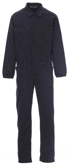 Trainingsanzug, zentraler Reißverschluss mit Doppel-Metall-Zug, Gummizug an den Handgelenken und innen an der Taille. Zwei aufgesetzte Taschen, zwei Brusttaschen inklusive Smartphone-Halterung, Ausweishülle, Stifthalter und Klettverschluss, Maßbandtasche. Doppelte Nähte im Schritt und im Bein