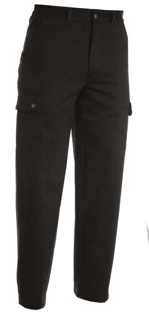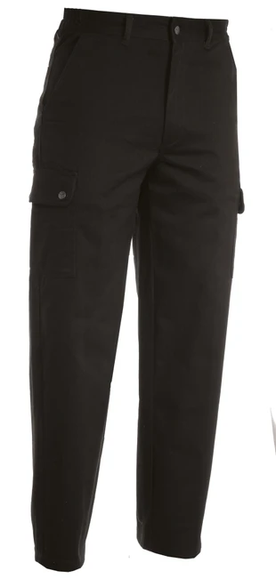 Winter-Herrenhose mit seitlich dehnbarem Bund und Gürtelschlaufen, Hosenschlitz mit Metallreißverschluss und -knopf, zwei klassisch geschnittenen Vordertaschen, zwei Seitentaschen mit Patte und Druckknöpfen, einer Reißverschlusstasche links, einer Einstecktasche für den Zollstock rechts, zwei Gesäß-Leistentaschen mit Knopf und Knopfloch