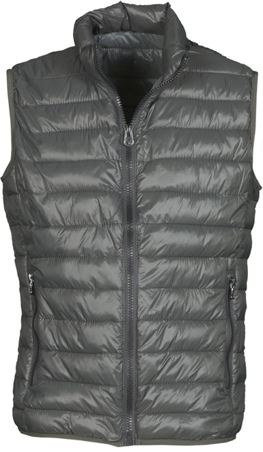 Herren-Weste im Daunenlook mit 8 mm SBS-Reißverschluss aus Kunststoff mit Metallschieber, feinem Saum an der Taille, zwei Außentaschen; Innenseite: Polyesterwattierung mit Dauneneffekt, drei Taschen