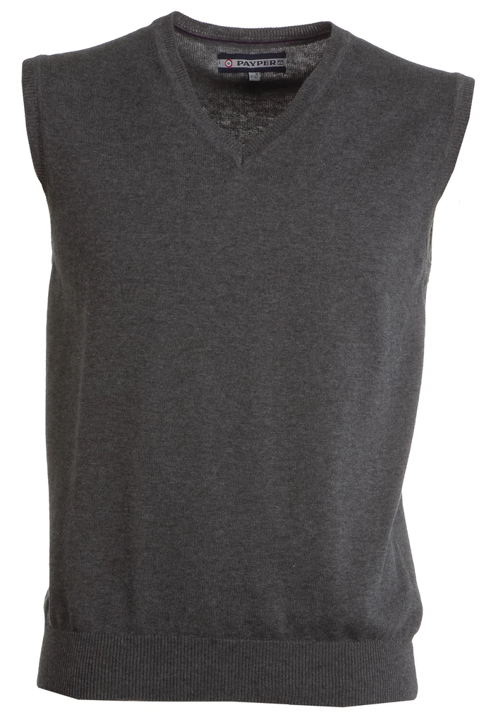 Herren-Pullunder mit V-Ausschnitt, Halsabschluss, Ärmelbündchen und Taille aus Feinripp, glatt und nahtlos gestrickt