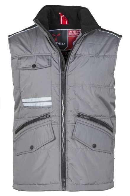Taillierte Herren-Weste mit Reißverschluss, zwei Außentaschen mit LOCK SYSTEM und zwei mit Reißverschluss, schräg stehenden Taschen, um das Einführen der Hand zu erleichtern, einer Handy-Brusttasche und einem Ring zum Befestigen des Ausweises, Reflexstreifen auf der Tasche und auf dem Rücken; Innenseite: wattiert, Fleece in Kontrastfarbe auf Rücken und Kragen, Innenreißverschluss zum einfacheren Veredeln mit Druck und Stick