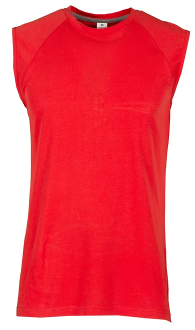 Ärmelloses Herren-Shirt mit Rundhalsausschnitt, Raglanschnitt, Feinripp-Kragen 1,5 cm aus Spandex-Mischgewebe mit Kappnaht an der Vorderseite, Verstärkungsband in Kontrastfarbe von
