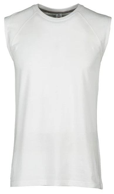 Ärmelloses Herren-Shirt mit Rundhalsausschnitt, Raglanschnitt, Feinripp-Kragen 1,5 cm aus Spandex-Mischgewebe mit Kappnaht an der Vorderseite, Verstärkungsband in Kontrastfarbe von
