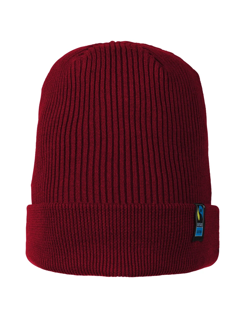 Material: 100% Bio-Fairtrade-Baumwolle, 2x1 Rippenstrick; Gewicht: 480 g/m²; Dehnbarer 2x1 rib knit, 2-lagig. Beanie mit bündchen, sichtbares Fairtrade-Flaggenetikett an der bündchen; Zertifikate: OEKO-TEX® STANDARD 100, 100% CERTIFIED ORGANIC COTTON, FAIR WEAR, EU ECOLABEL, SA8000, NEUTRAL® RESPONSIBILITY