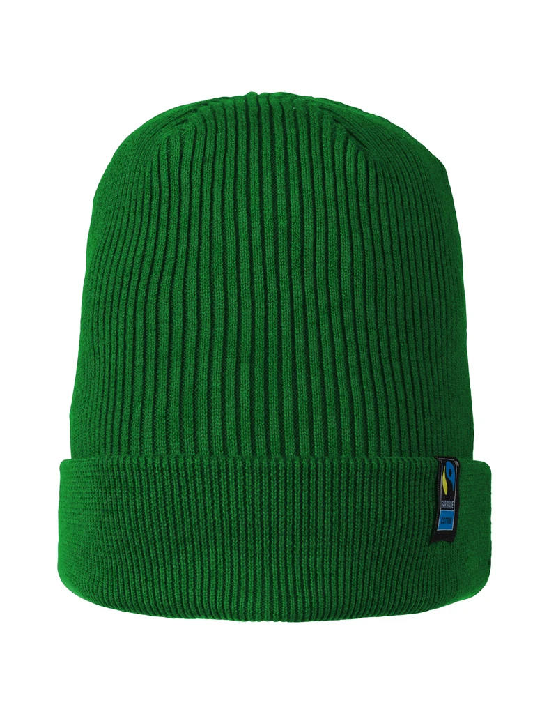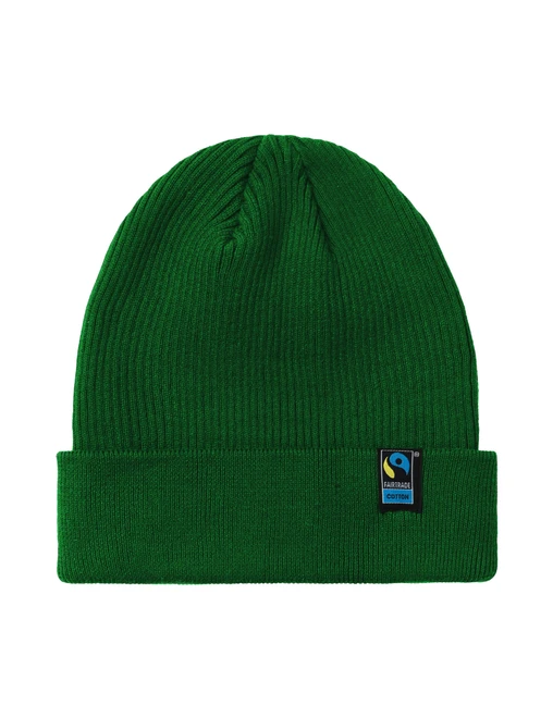 Material: 100% Bio-Fairtrade-Baumwolle, 2x1 Rippenstrick; Gewicht: 480 g/m²; Dehnbarer 2x1 rib knit, 2-lagig. Beanie mit bündchen, sichtbares Fairtrade-Flaggenetikett an der bündchen; Zertifikate: OEKO-TEX® STANDARD 100, 100% CERTIFIED ORGANIC COTTON, FAIR WEAR, EU ECOLABEL, SA8000, NEUTRAL® RESPONSIBILITY