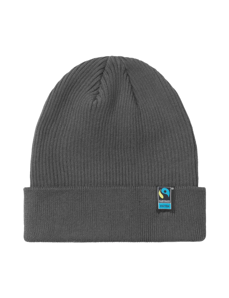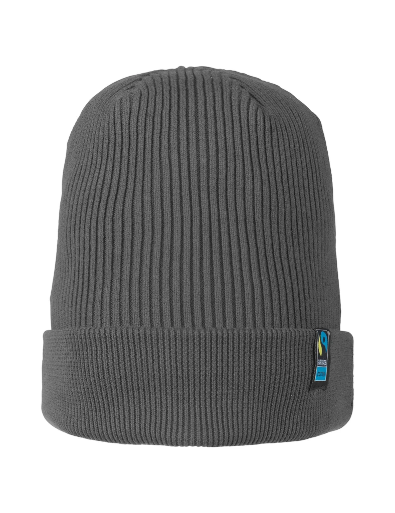 Material: 100% Bio-Fairtrade-Baumwolle, 2x1 Rippenstrick; Gewicht: 480 g/m²; Dehnbarer 2x1 rib knit, 2-lagig. Beanie mit bündchen, sichtbares Fairtrade-Flaggenetikett an der bündchen; Zertifikate: OEKO-TEX® STANDARD 100, 100% CERTIFIED ORGANIC COTTON, FAIR WEAR, EU ECOLABEL, SA8000, NEUTRAL® RESPONSIBILITY