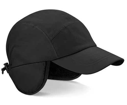 5-Panel-Design, wasserdichtes und atmungsaktives Gewebe, vorgeformter Schirm, optional umklappbare Ohrenklappen, getapte Nähte, elastische Kordelregulierung mit Knebel, Einheitsgröße