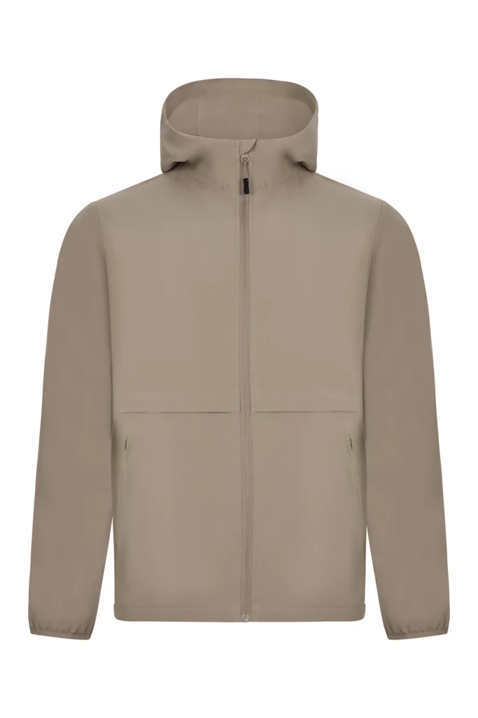 Full front inverted tone-on-tone zipper with chin protector and cord puller