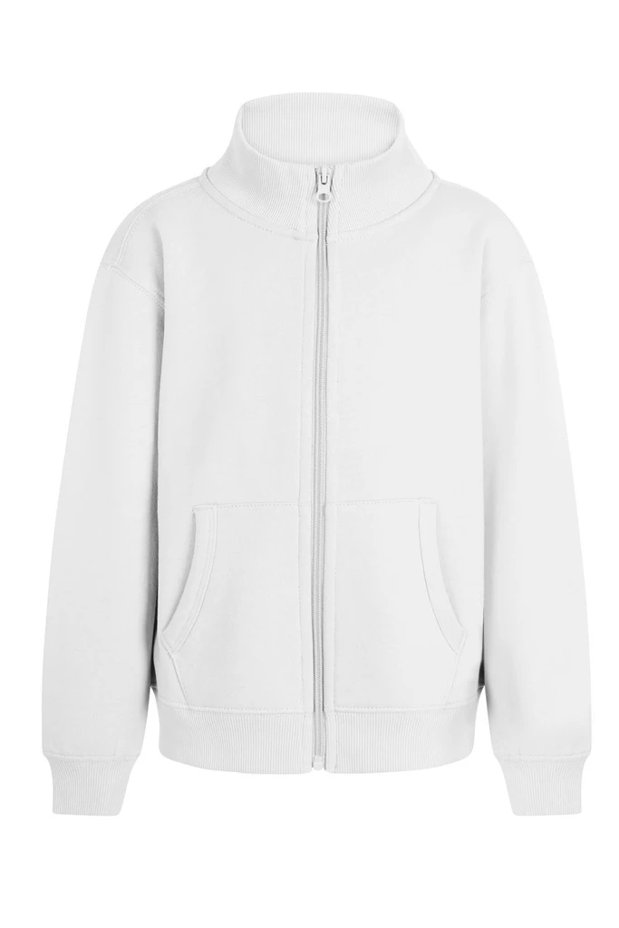 KIDS´ Sweatshirt mit durchgehendem Reißverschluss. Gebürsteter Fleece. 60 % Baumwolle – 40 % Polyester. 270 g/m² Gebürstete Innenseite, weich, bequem und warm Nylon-Reißverschluss Kängurutaschen mit feiner Einfassung und verstärkten Nähten Formbeständiger Bund und Ärmelbündchen aus Jersey-Stoff 2X1 mit Elasthan Verstärktes Single-Jersey-Innenband am Halsausschnitt Unisex-Größen: COOPER