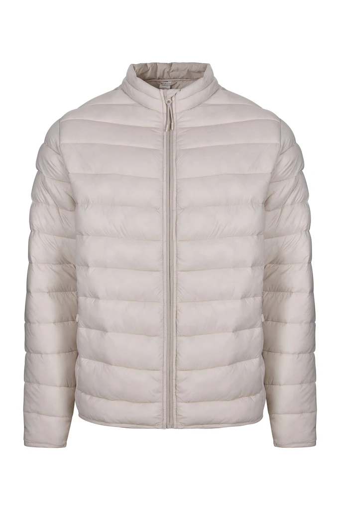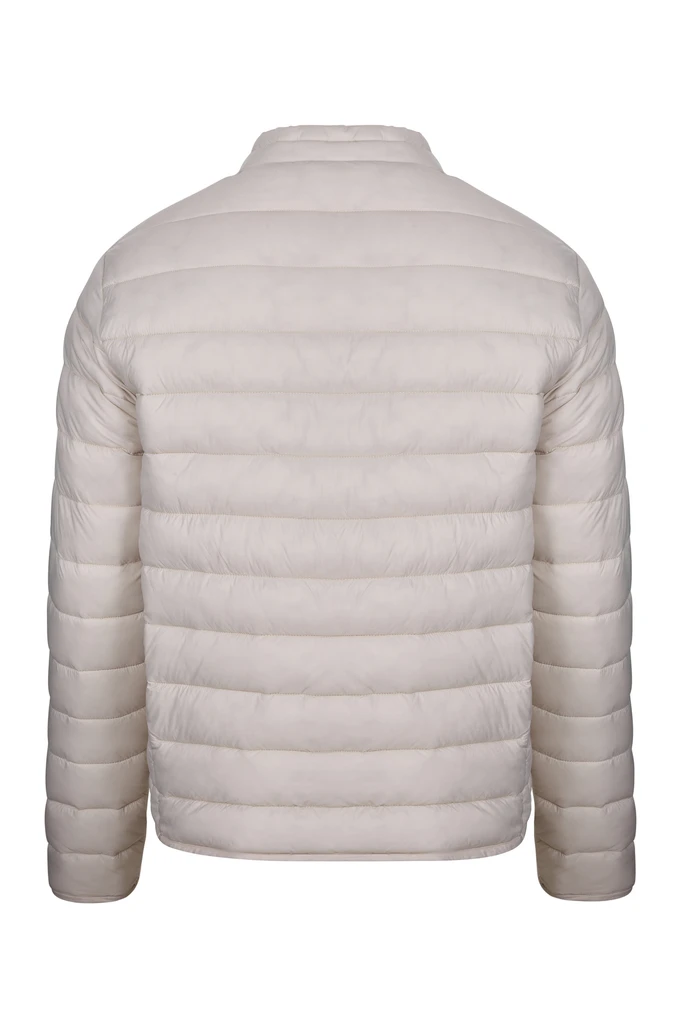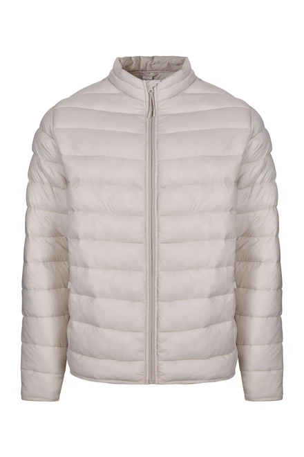 Gefütterte Unisex-Jacke. 100 % Polyamid. 380T. 310 g/m². Wasserabweisend. Federn wie Kunstfedern. Durchgehender Reißverschluss vorne mit Kinnschutz. 2x Seitentasche mit umgekehrtem Reißverschluss. Ton-in-Ton-Reißverschluss mit Kunststoffspitze und Polyesterschieber. Schräger Besatz am Saum und an den Manschetten. Aufhängeöse an der Innenseite des Kragens.