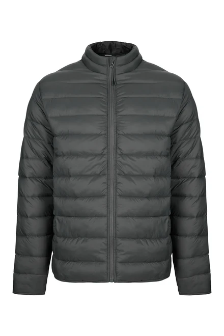 Gefütterte Unisex-Jacke. 100 % Polyamid. 380T. 310 g/m². Wasserabweisend. Federn wie Kunstfedern. Durchgehender Reißverschluss vorne mit Kinnschutz. 2x Seitentasche mit umgekehrtem Reißverschluss. Ton-in-Ton-Reißverschluss mit Kunststoffspitze und Polyesterschieber. Schräger Besatz am Saum und an den Manschetten. Aufhängeöse an der Innenseite des Kragens.
