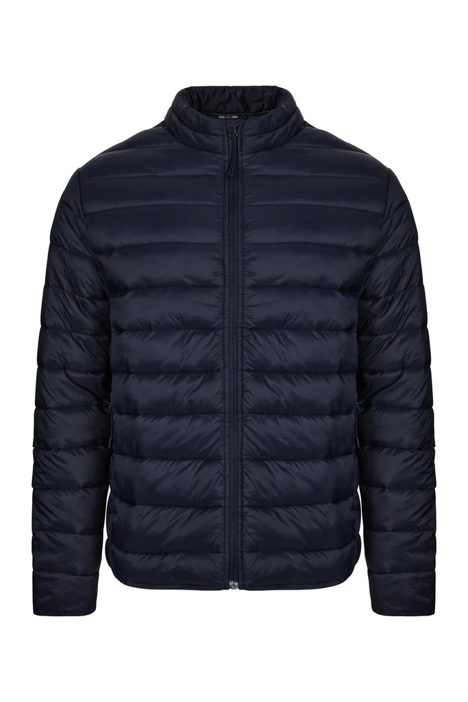 Gefütterte Unisex-Jacke. 100 % Polyamid. 380T. 310 g/m². Wasserabweisend. Federn wie Kunstfedern. Durchgehender Reißverschluss vorne mit Kinnschutz. 2x Seitentasche mit umgekehrtem Reißverschluss. Ton-in-Ton-Reißverschluss mit Kunststoffspitze und Polyesterschieber. Schräger Besatz am Saum und an den Manschetten. Aufhängeöse an der Innenseite des Kragens.