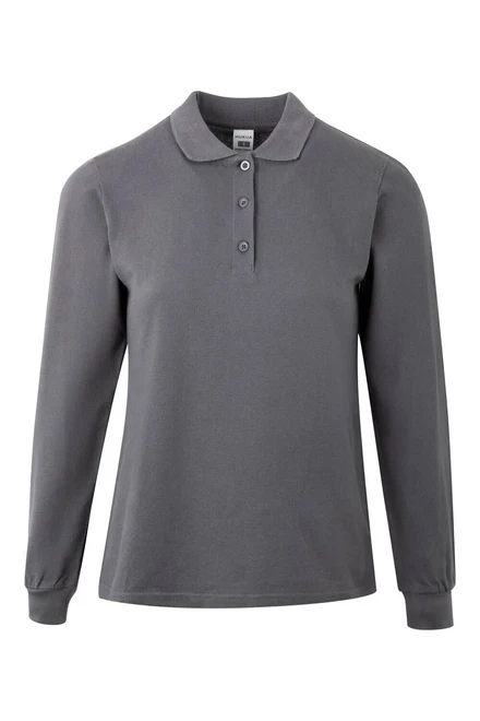 Damen-Langarmpolo. Piqué-Stoff. 100 % ringgesponnene, vorgeschrumpfte Baumwolle. 210 g/m²
