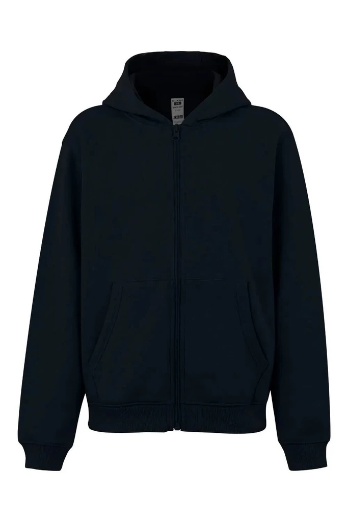 KINDER-Sweatshirt mit durchgehendem Reißverschluss und Kapuze. Gebürstetes Fleece. 60 % Baumwolle – 40 % Polyester. 270 g/m²