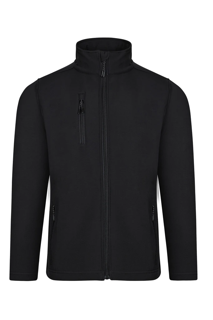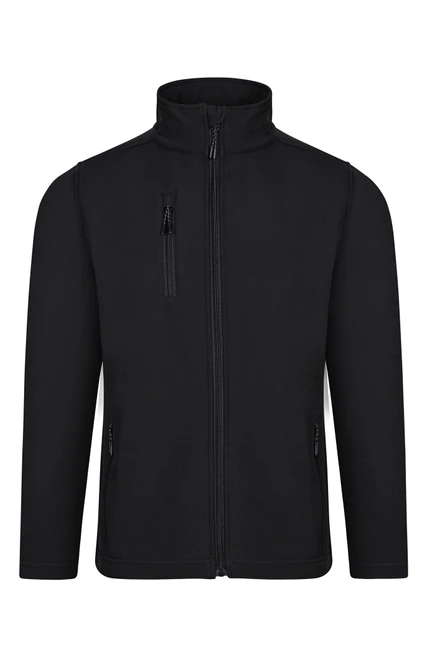 UNISEX-Softshelljacke. 94 % Ployester – 6 % Elastan. 280 g/m². Wasserabweisend. Weiches und warmes Polarfleece-Futter. Durchgehender Reißverschluss vorne mit Kinnschutz, 3 Reißverschlusstaschen. Ton-in-Ton-Reißverschluss mit Kunststoffspitze und Polyesterschieber. Hinten länger abgerundet als vorne. Aufhängeöse an der Innenseite des Kragens.