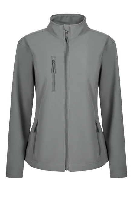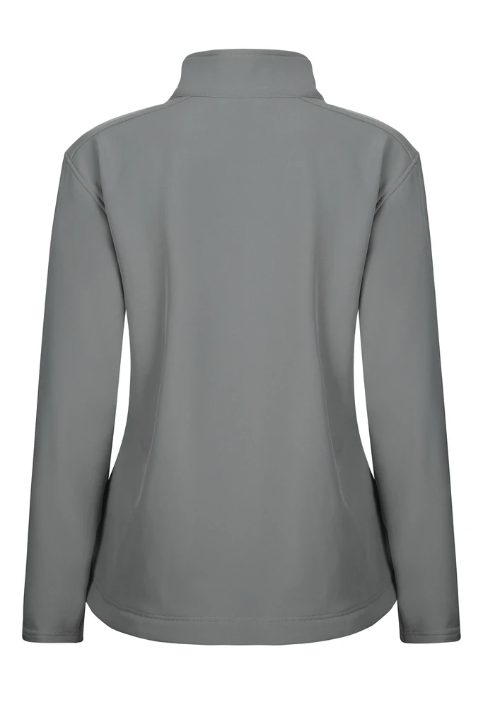 Softshelljacke für Damen. 94 % Polyester – 6 % Elasthan. 280 g/m². Wasserabweisend. Weiches und warmes Polarfleece-Futter. Durchgehender Reißverschluss vorne mit Kinnschutz. 3 x Reißverschlusstaschen. Ton-in-Ton-Reißverschluss mit Kunststoffspitze und Polyesterschieber. Hinten länger abgerundet als vorne. Aufhängeöse an der Innenseite des Kragens.