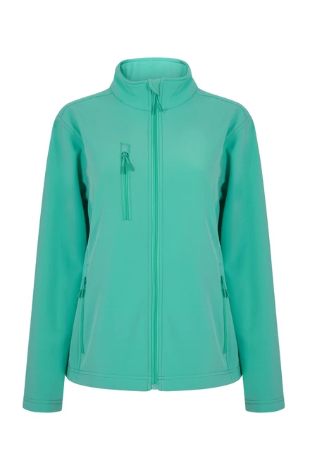 Softshelljacke für Damen. 94 % Polyester – 6 % Elasthan. 280 g/m². Wasserabweisend. Weiches und warmes Polarfleece-Futter. Durchgehender Reißverschluss vorne mit Kinnschutz. 3 x Reißverschlusstaschen. Ton-in-Ton-Reißverschluss mit Kunststoffspitze und Polyesterschieber. Hinten länger abgerundet als vorne. Aufhängeöse an der Innenseite des Kragens.