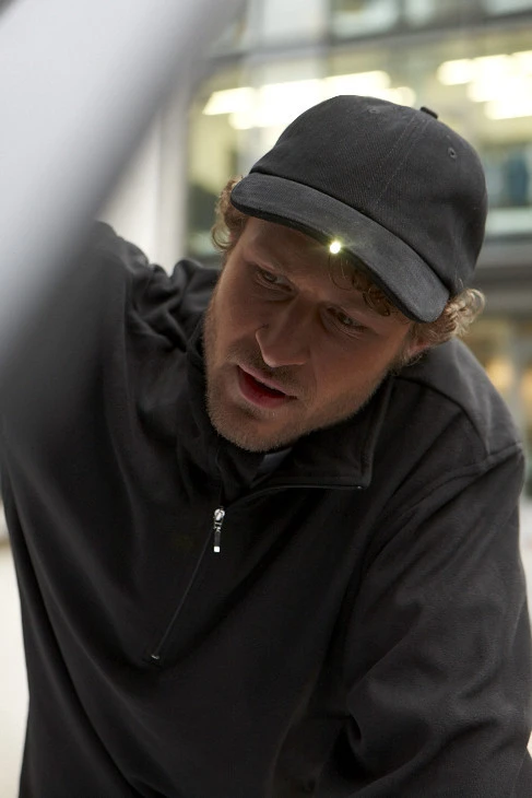 Einfaches An- und Ausschalten per Knopfdruck auf der Schildunterseite