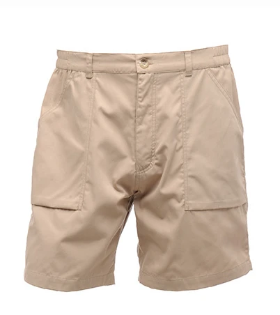 Strapazierfähige wasserabweisende Ausrüstung, teilelastischer Bund mit Gürtelschlaufen, Knopf- und Reißverschluss, 2 große Vordertaschen, 2 Gesäßtaschen, eine davon mit verdecktem Reißverschluss