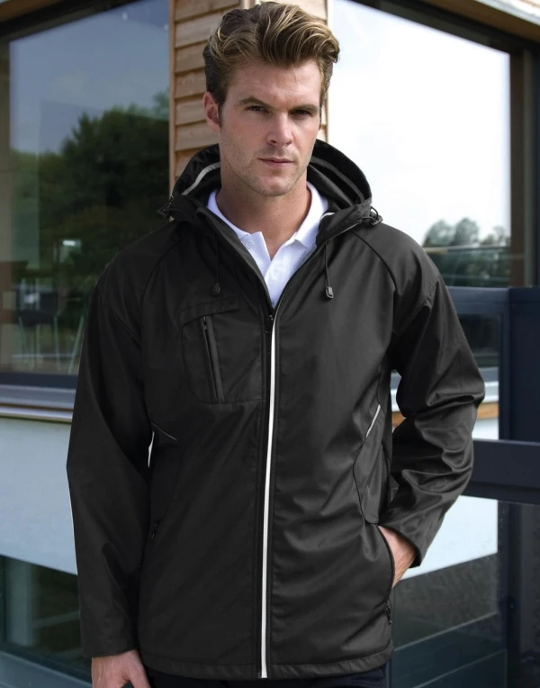 Mittelschicht: atmungsaktive (2.000 g/m² in 24h), wind- und wasserdichte (2.000 mm) TPU-Membran