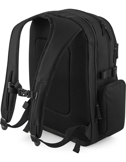 Material: 600D-Polyester; Fassungsvermögen: 23 Liter; TearAway-Label für einfaches Rebranding, Laptop-kompatibel bis 17", gepolstertes Laptopfach mit externem Zugriff, Skateboard-Tragegurte, internes Organizerfach, Fronttasche mit Reißverschluss, Seitentaschen mit Reißverschluss, gepolstertes Rückenteil, Kompressionsriemen, gepolsterte verstellbare Schultergurte, Haltegriff