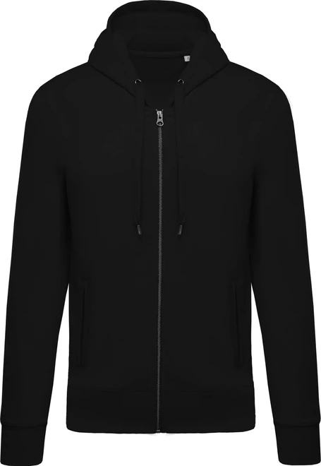 80 % BIO-Baumwolle, OCS Blended - Organic Content Standard / 20 % Polyester. Gebürstetes Fleece. Modischer Schnitt. 2 Paspeltaschen an der Vorderseite. Metall-Reißverschluss. Strickbündchen an Ärmeln und Saum, gefütterte Kapuze mit Ton-in-Ton Kordelzug. Fischgrätnackenband. Durchzug an Vordertasche und Kragen. Kein Markenetikett am Kragen, nur Größenkennzeichnung für eine leichtere Veredelung.