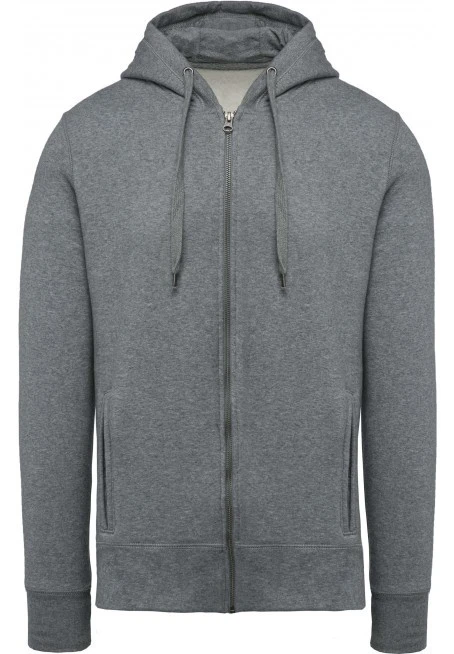 80 % BIO-Baumwolle, OCS Blended - Organic Content Standard / 20 % Polyester. Gebürstetes Fleece. Modischer Schnitt. 2 Paspeltaschen an der Vorderseite. Metall-Reißverschluss. Strickbündchen an Ärmeln und Saum, gefütterte Kapuze mit Ton-in-Ton Kordelzug. Fischgrätnackenband. Durchzug an Vordertasche und Kragen. Kein Markenetikett am Kragen, nur Größenkennzeichnung für eine leichtere Veredelung.