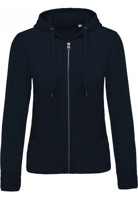 80 % BIO-Baumwolle, OCS Blended - Organic Content Standard / 20 % Polyester. Gebürstetes Fleece. Modisch taillierter Schnitt. 2 Paspeltaschen an der Vorderseite. Metall-Reißverschluss. Strickbündchen an Ärmeln und Saum, gefütterte Kapuze mit Ton-in-Ton Kordelzug. Fischgrätnackenband. Durchzug an Vordertasche und Kragen. Kein Markenetikett am Kragen, nur Größenkennzeichnung für eine leichtere Veredelung.