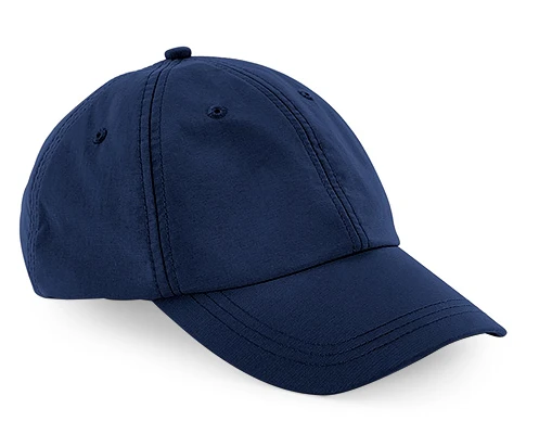 TearAway-Label für einfaches Rebranding, 6-Panel-Design, wasserdichtes und atmungsaktives Material, vorgekrümmter Schirm, Schweißband aus 100 % Polyester Coolmax®-Gewebe, verstellbares Gurtband und Clipverschluss