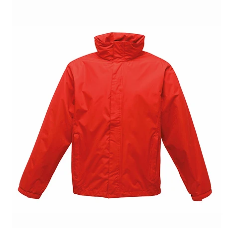 Wasserdichtes Hydrafort 5000 Peached-Polyester-Gewebe, winddichtes Gewebe, getapte Nähte, Polyester-Futter, verdeckte Kapuze mit Regulierer, Sturmklappe mit Klettverschluss, verstellbare Ärmelbündchen, 2 RV-Untertaschen, Innentasche, verstellbarer Shockcord-Saum, verdeckter RV-Eingang im Futter für Stickzugang