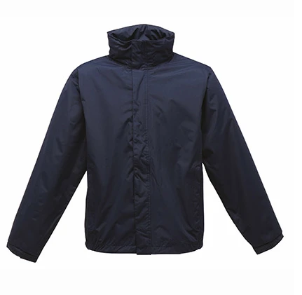 Wasserdichtes Hydrafort 5000 Peached-Polyester-Gewebe, winddichtes Gewebe, getapte Nähte, Polyester-Futter, verdeckte Kapuze mit Regulierer, Sturmklappe mit Klettverschluss, verstellbare Ärmelbündchen, 2 RV-Untertaschen, Innentasche, verstellbarer Shockcord-Saum, verdeckter RV-Eingang im Futter für Stickzugang