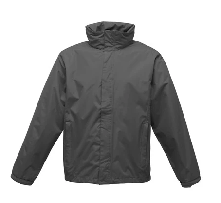 Wasserdichtes Hydrafort 5000 Peached-Polyester-Gewebe, winddichtes Gewebe, getapte Nähte, Polyester-Futter, verdeckte Kapuze mit Regulierer, Sturmklappe mit Klettverschluss, verstellbare Ärmelbündchen, 2 RV-Untertaschen, Innentasche, verstellbarer Shockcord-Saum, verdeckter RV-Eingang im Futter für Stickzugang