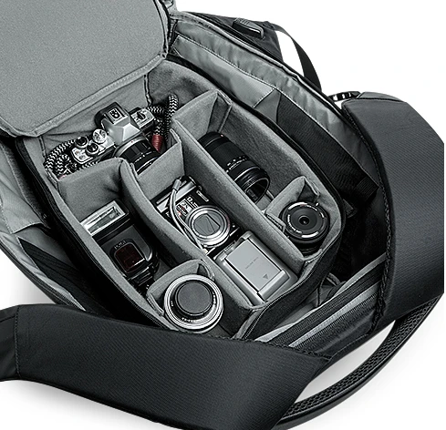 TearAway Label für einfaches Neulabeln, Schützende Schaumkonstruktion, Hauptfach mit Reißverschluss, Gepolstertes flexibles Trennsystem innen, Hintere Einschubtasche, Futter aus gebürstetem Polyester, Kann sowohl allein als auch als Innenteil einer Tasche verwendet werden, Kompakt und leicht, Verstellbarer, abnehmbarer Schulterriemen, Haltegriff; Maße: 24 x 33 x 11 cm; Fassungsvermögen: 7.5 Liter