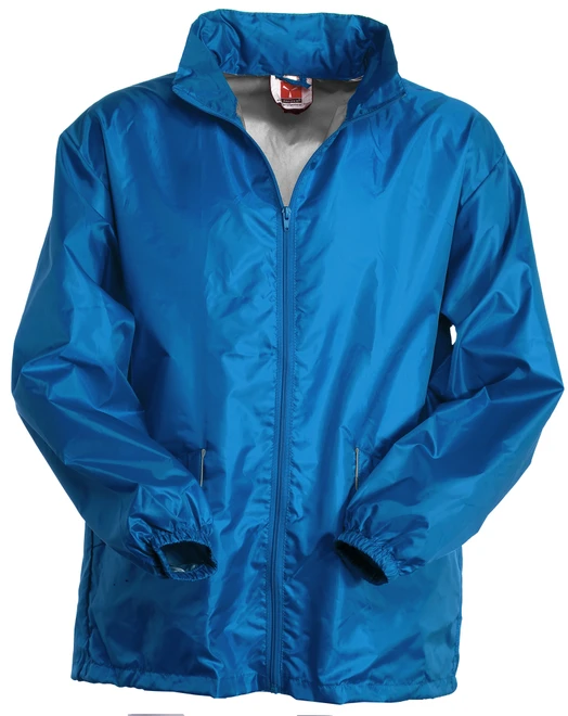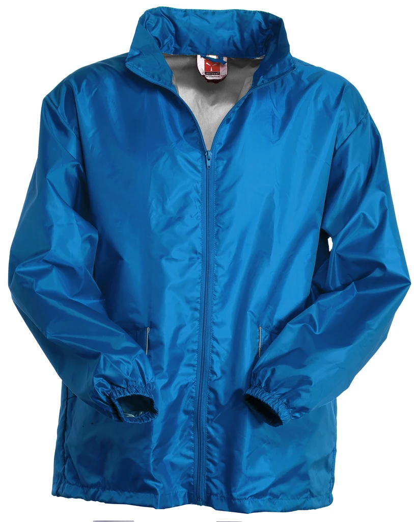 Wasserdichte Unisex-Jacke, ungefüttert, mit einrollbarer Kapuze, elastischen Ärmelbündchen, zwei Taschen mit verdeckten Reißverschlüssen, reflektierenden Profilen und Einsatz auf dem Rücken, silberfarbener Innenseite (Ausnahme: gelbes Modell), Jeweils in einem mit Kordelzug und Stopper verschließbaren Täschchen mit seitlichem Griff verpackt
