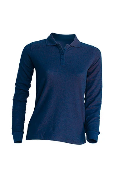 Damen Polo Piquee Shirt, tailliert, langer Arm mit Bündchen. Enzym behandelte Baumwolle, besonders weicher Griff. Schmale Knopfleiste mit 3 Knöpfen. 1/1 Rib Kragen und Bündchen mit Lycra. Verstärkte Seitenschlitze. Grey Melange: 85% Baumwolle / 15% Polyester.