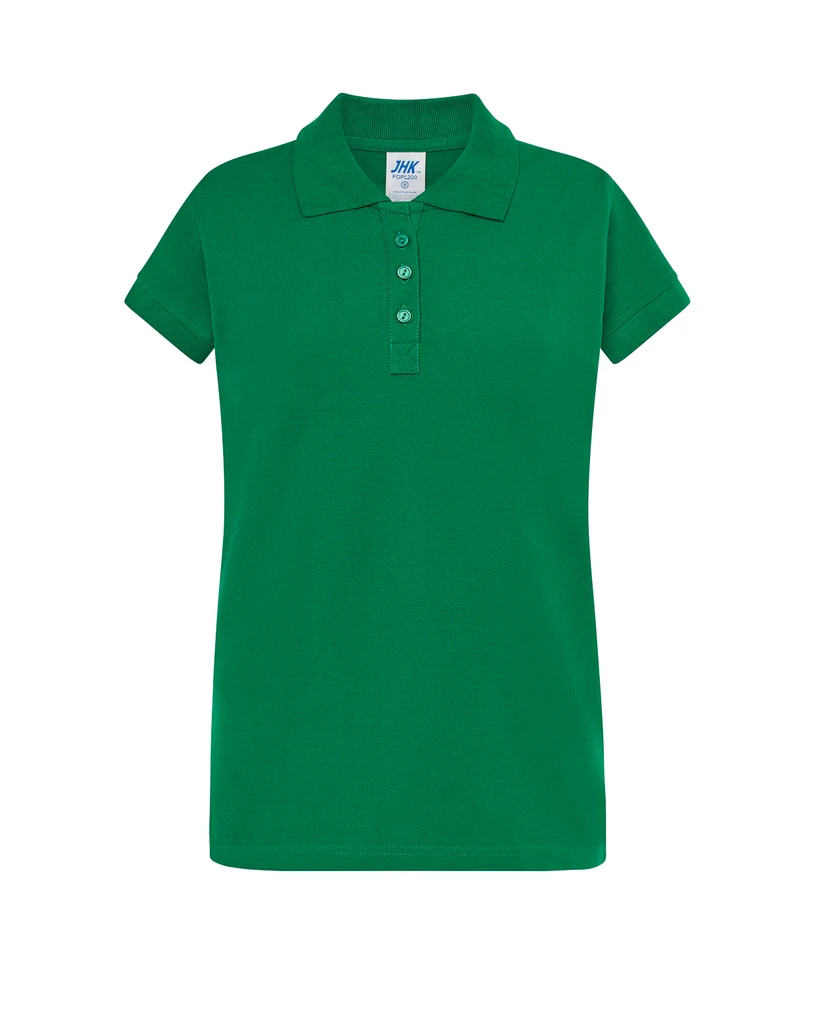 Polo-Piqué für Frauen mit kurzen Ärmeln, speziell für Unternehmen, für Langlebigkeit und Qualität. In 10 Farben erhältlich. Von Größe S bis 3XL. Abnehmbarer Aufkleber.