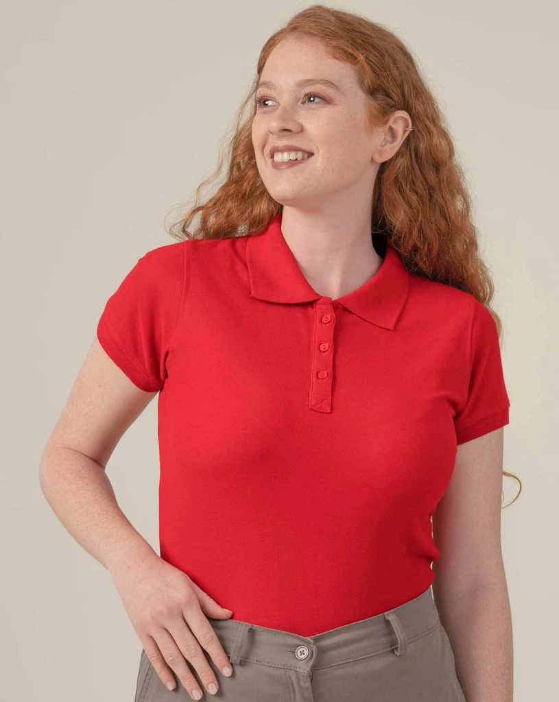 Polo-Piqué für Frauen mit kurzen Ärmeln, speziell für Unternehmen, für Langlebigkeit und Qualität. In 10 Farben erhältlich. Von Größe S bis 3XL. Abnehmbarer Aufkleber.