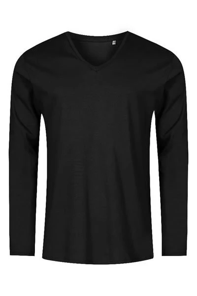 Langärmliges Single-Jersey-T-Shirt mit V-Ausschnitt und Stoffkragen aus gekämmter Baumwolle. Die besonders glatte Oberfläche und der fließende Stoff verleihen dem Jersey ein einzigartiges, elastisches und seidiges Finish. Das T-Shirt ist schmal geschnitten und mit Seitennähten versehen. Zertifiziert nach OEKO-TEX®